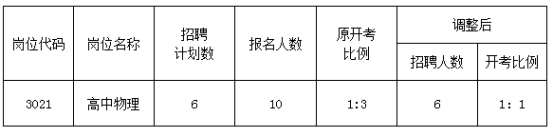 关于2021年江阴市部分学校公开招聘教师计划调整的公告 根据《2021年江阴市部分学校公开招聘教师公告》规定,经网上报名、资格初审,部分岗位报名人数不足,经市事业单位公开招聘综合管理部门同意,现将公开招聘计划予以调整。 1、以下岗位适当降低开考比例: