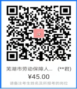 4、扫码缴费。应聘者扫码缴纳报名费用45元。请用支付宝扫码后添加备注,注明考生姓名、报考岗位。根据安徽省财政厅、安徽省物价局财综〔2013〕2568号文件规定,按每人每科45元标准收取笔试费用。享受国家最低生活保障金城镇家庭和农村特困家庭的报考人员享受减免考试费用政策(先交后退,退费时需提供相关材料)。