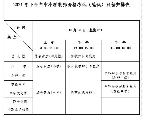 考试日期为2021年10月30日(周六),各科目笔试考试时间为120分钟。