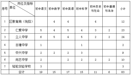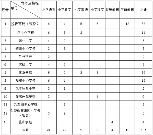本次招聘分学段进行,小学、幼教、特教场次招聘计划岗位数107名,初中场次招聘计划岗位数83名,具体如下: