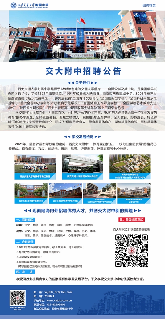 2022年陕西省西安交通大学附属中学教师招聘信息