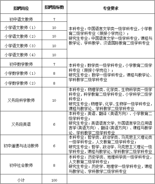 具体招聘岗位、指标数、学科专业要求等详见下表: