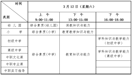 4.选择初中、高中、中职文化课类别中“心理健康教育”、“日语”、“俄语”学科的考生,笔试科目三《学科知识与教学能力》暂不考试,结合面试一并考核;选择小学类别中“心理健康教育”、“信息技术”、“小学全科”的考生,笔试科目为《综合素质》(代码:201)和《教育教学知识与能力》(代码:202)。