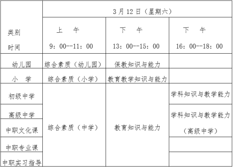 (二)考试时间:2022年3月12日,所有考试科目均采用纸笔方式进行,具体安排如下: