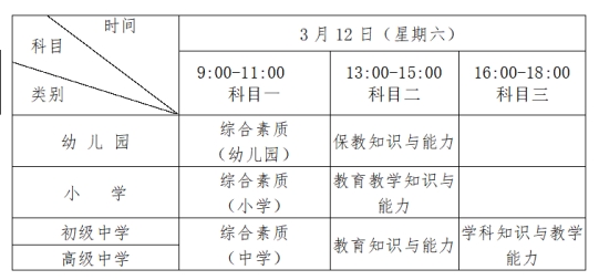 2.初级中学笔试科目中,“思想品德学科知识与教学能力(初级中学)” 调整为“道德与法治学科知识与教学能力(初级中学)”。