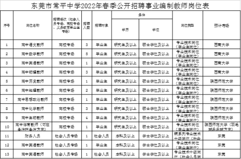 广东省东莞市常平中学2022年春季编制教师招聘预告