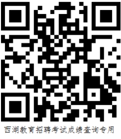 杭州市西湖区2021学年第三批次公开招聘教师笔试初选成绩查询通知 各有关考生: 西湖区教育局所属事业单位公开招聘教师公告(2021学年第三批次)的笔试成绩于2022年7月15日上午公布。届时请扫描以下二维码,输入身份证号码、手机号码查询本人笔试成绩。 请惠存下面二维码,后续可根据对应时间节点,扫描该二维码查询笔试排名、进入面试情况、面试时间安排、体检安排等。