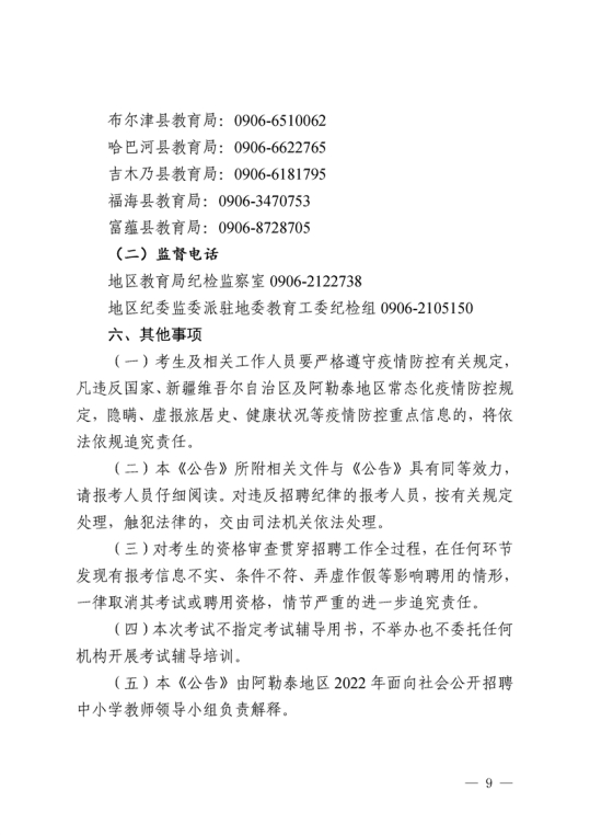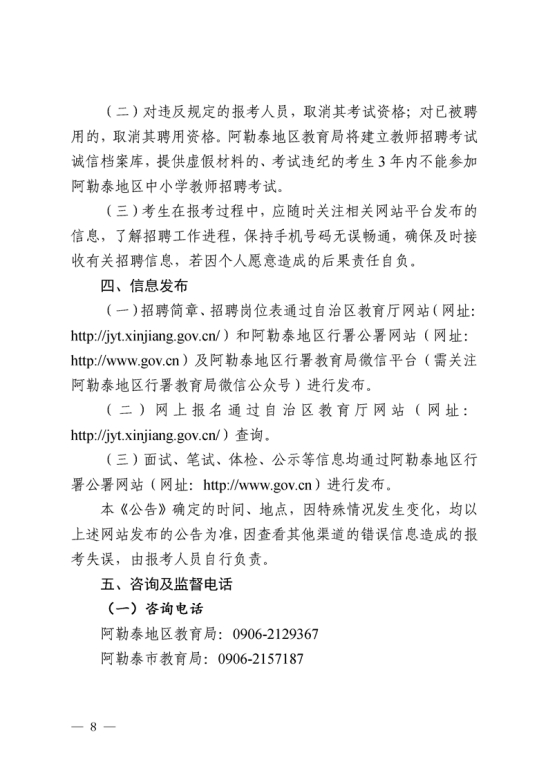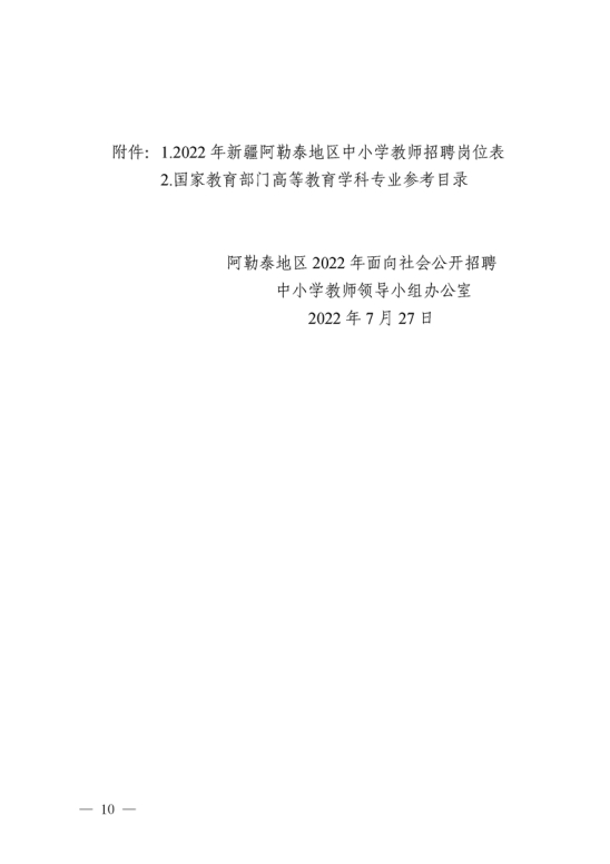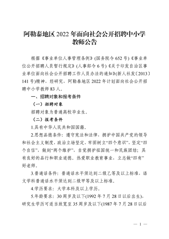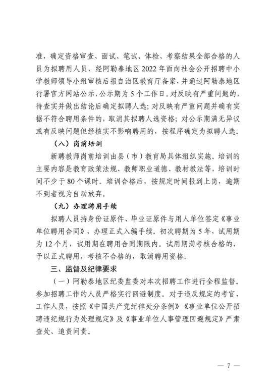 新疆阿勒泰地区2022年中小学教师招聘公告