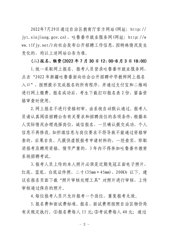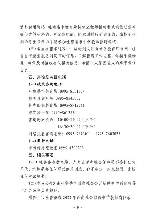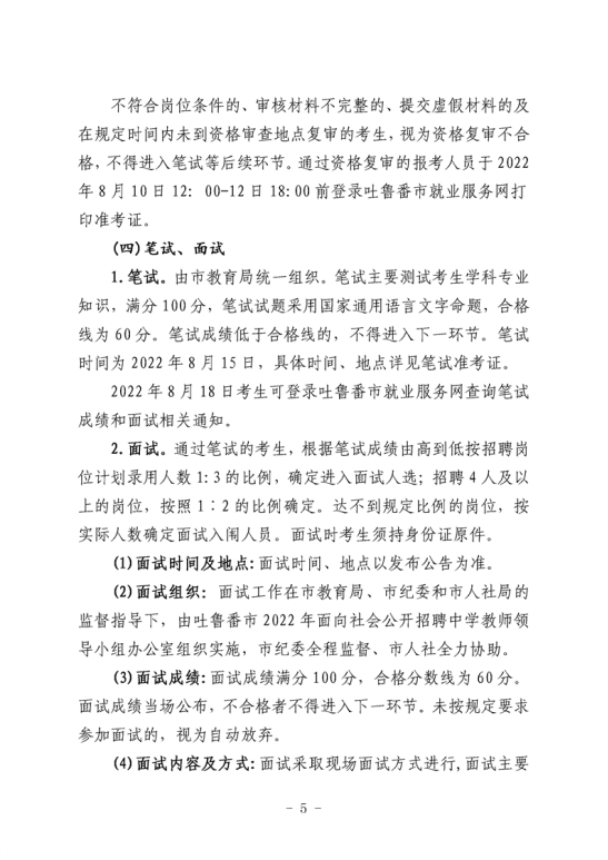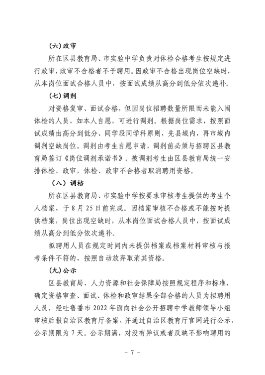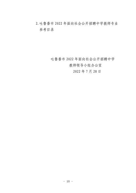 新疆吐鲁番市2022年中学教师招聘公告(61名)