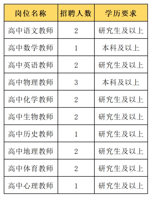 根据市政府办学规划,2023年学校继续扩大办学规模,现面向全国招聘优秀应届毕业生18人。被录用者纳入公办学校事业单位人员编制,工资福利待遇由市财政统发,入职时间从2023年8月开始。招聘岗位计划如下:
