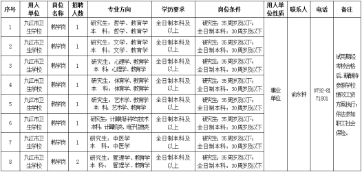 九江市卫生学校2022年公开招聘9名编外工作人员公告