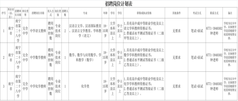 南宁市第二十八中学2023年公开招聘教师启事