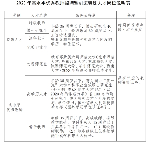 根据学校发展需要,现将2023年优秀教师招聘暨引进特殊人才公告如下: