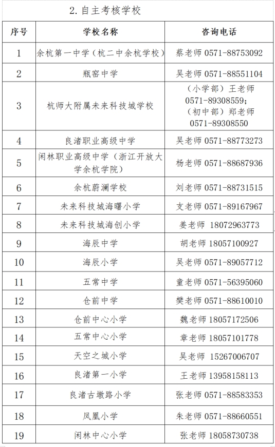 咨询电话:1.区教育局(0571)89392010、89391995