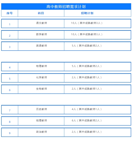 2、初审:学校对报名人员进行资格审核,审核通过后通知参加试教。试教时需携带个人原始证件(身份证、学历学位证、教师资格证、主要荣誉证书等)。符合优先招聘条件的报名者,可直接到学校面谈;特别优秀者可直接录用。