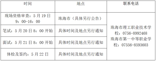 考试成绩、参加体检及考察人员名单,于面试工作结束当日,在珠海市理工职业技术学校和珠海市第一中等职业学校网站及微信公众号公布。