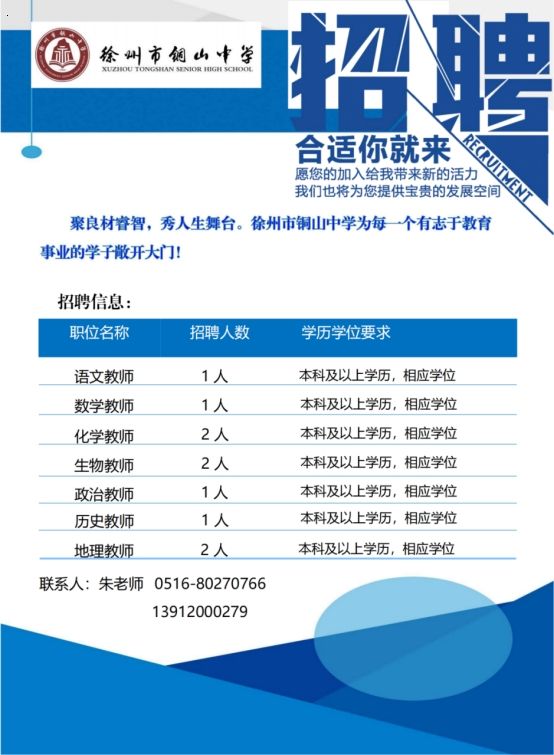 江苏省徐州市铜山中学2024年公开招聘教师岗位公告