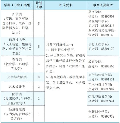 学科(专业)带头人等高层次人才引进不受年度进人计划数限制,一人一议(直接联系西安翻译学院人力资源处,联系电话:029-85892566)。