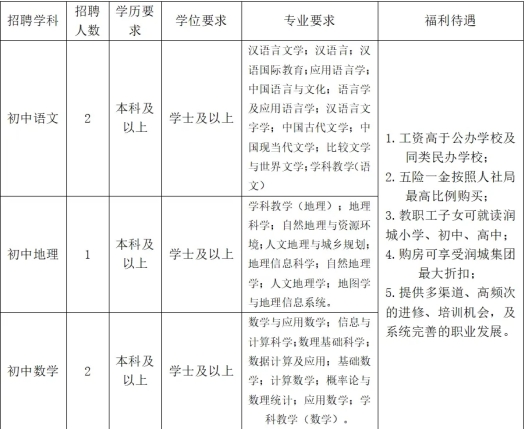 3.教职工子女可就读润城小学、初中、高中;