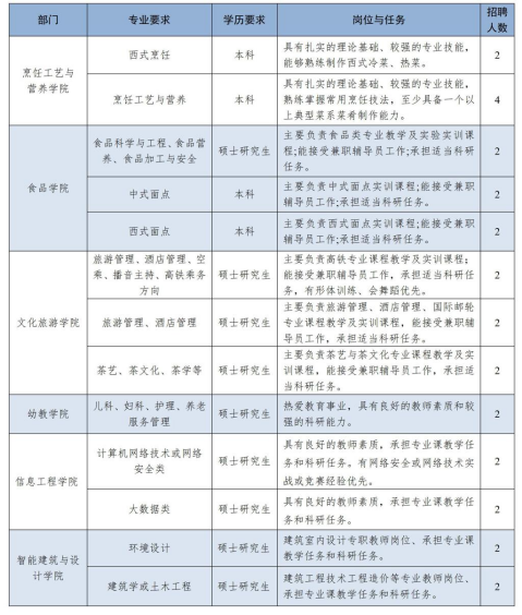 1.基本工资待遇参照国家事业单位标准执行,绩效工资按照课时补贴、职务补贴、博士、硕士人才津贴、年度绩效奖金及其他相关补贴标准另行计发;缴纳五险一金;提供工作餐;安排校内精装成套住房(两室一厅、三室两厅、四室两厅三种户型),或者校外公共租赁住房一套(单间,含独立卫生间,配备床、衣柜、书桌等家具,上下班班车接送);周末双休,享受带薪寒暑假及国家法定节假日。