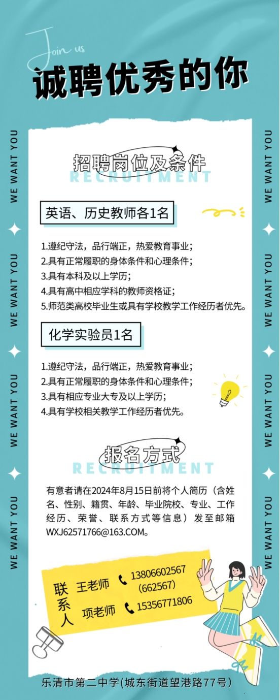 2024年浙江省温州市乐清市第二中学教师招聘启事