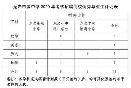福建省龙岩市市属中小学引进及考核招聘2020年高校优秀毕业生公告