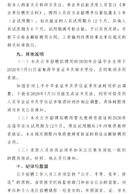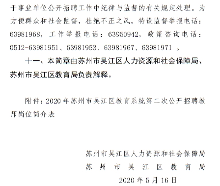 2020年江苏省苏州市吴江区教育系统第二次教师招聘简章