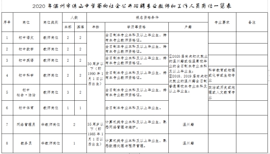 1.2020年温州市绣山中学面向社会公开招聘专业教师和工作人员岗位一览表