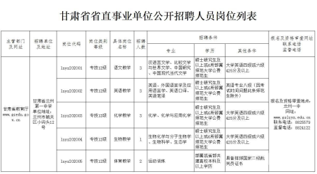(六)具备岗位要求的其他条件(详见附件《甘肃省兰州第一中学公开招聘人员岗位列表》)。
