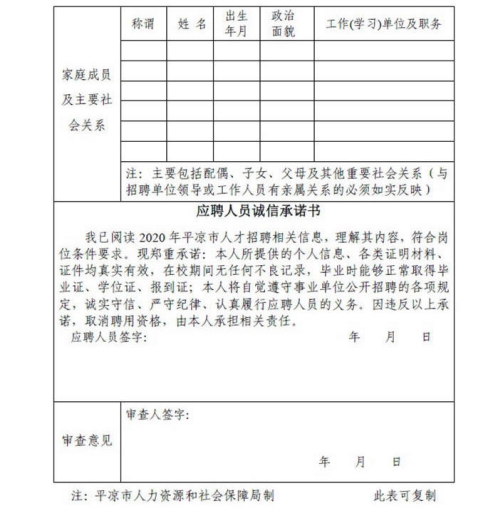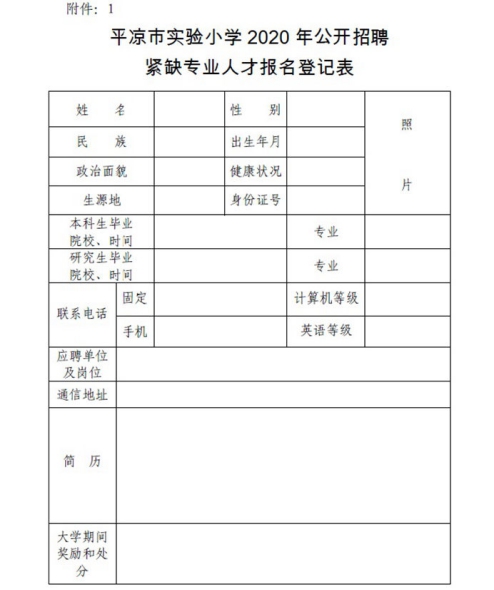 附件:1.平凉市实验小学2020年公开招聘紧缺专业人才报名登记表