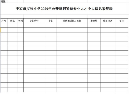 2.平凉市实验小学2020年公开招聘紧缺专业人才信息采集表