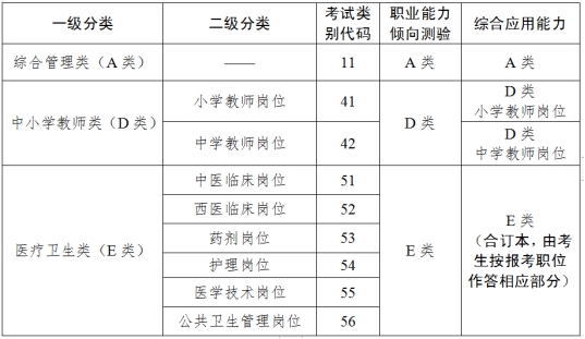 事业单位公开招聘考试分类表