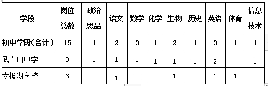 (二)2020年武当山特区招聘中学学段教师岗位