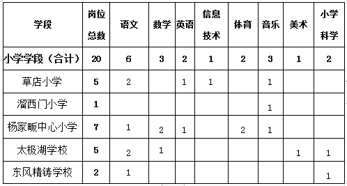 根据农村学校编制、岗位空缺情况及教育教学需要,2020年武当山特区面向社会公开招聘农村义务教育学校非新机制教师35名,招聘岗位及数量情况如下: