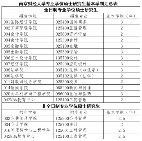 我校专业学位硕士研究生基本学制如下表: