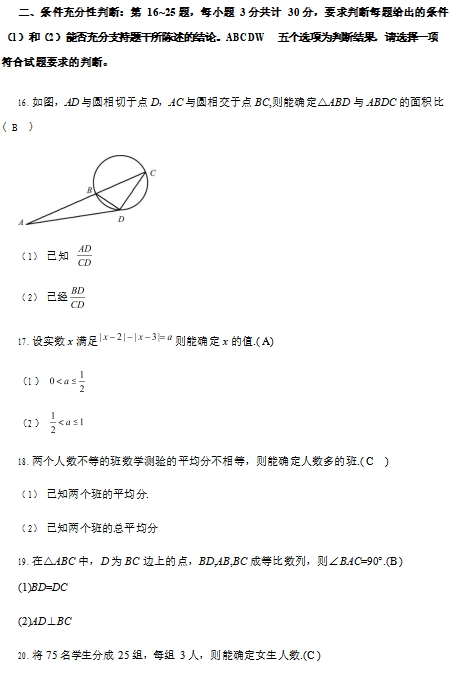 三、逻辑推理,第 26 题~55 小题,每小题 2 分共计 60 分。下列给出 ABCDW 五个选项, 只有一项符合题目的要求