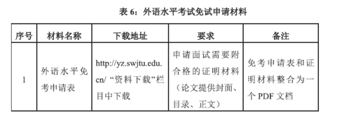 外语水平考试时间:2023年4月8日上午 8:30—11:30,考生申请免试条件如表5所示。