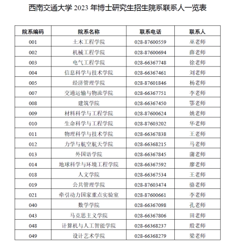 (六)学校研究生院博士招生联系人:刘老师、万老师,电话:028-66366756、028-66366757。