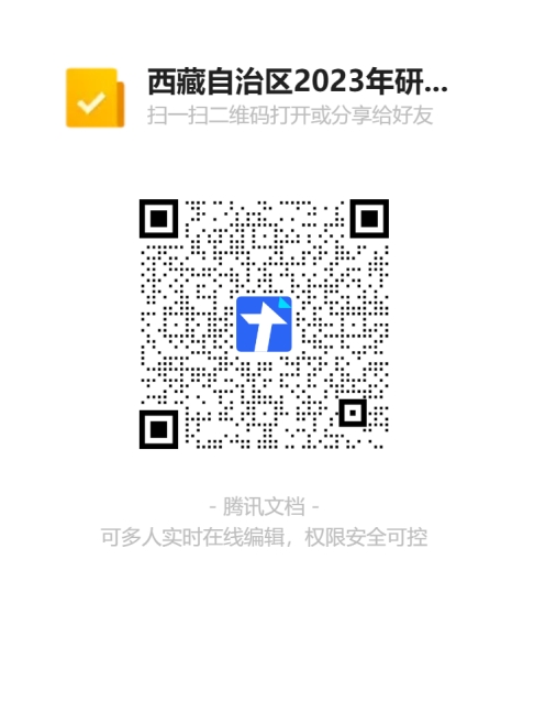 使用微信扫码识别以下二维码图片(请考生务必收藏或保存二维码,以便随时更新信息),进入“西藏自治区2023年研考信息填报登记”腾讯文档,输入身份证号后进行填报。