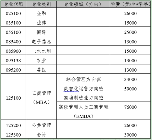 2.全日制专业学位硕士学费标准