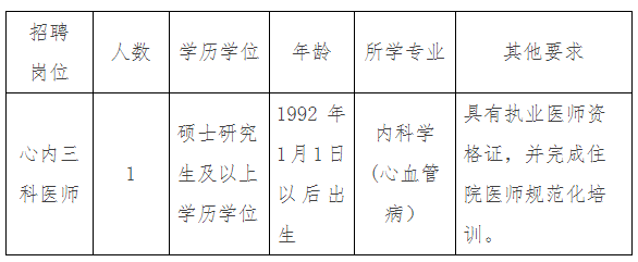 因医院发展需要,现面向社会公开招聘事业编制工作人员1名,现将有关事项公告如下: