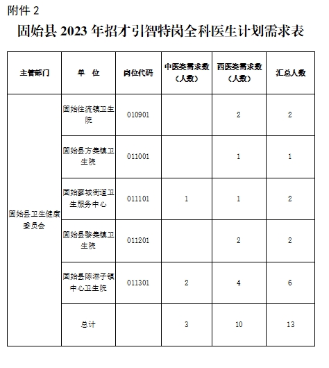 2.固始县2023年招才引智特岗全科医生计划需求表