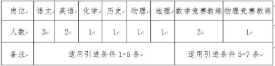 1.符合引进条件1-3条的优秀教师可以不受引进岗位限制,待遇面议。