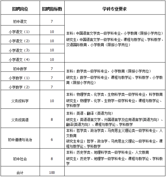 注:招聘指标总数100人,具体招聘指标数可能根据实际报名情况适当调整。