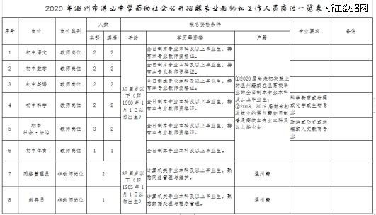 1.2020年温州市绣山中学面向社会公开招聘专业教师和工作人员岗位一览表