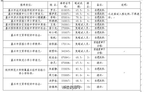 2020年嘉兴经济技术开发区(国际商务区)公开招聘公办中小学教师进入资格复审环节,共有13名考生(含免笔试人员)资格复审不合格或自愿放弃。根据《2020年嘉兴经济技术开发区(国际商务区)公开招聘公办中小学教师公告》“资格复审不合格或自愿放弃的,则相关岗位按该学科笔试成绩(技能学科岗位根据技能测试成绩×40%+笔试成绩×60%)从高分到低分依次递补”的规定,共有3个岗位符合递补条件,具体递补情况如下: