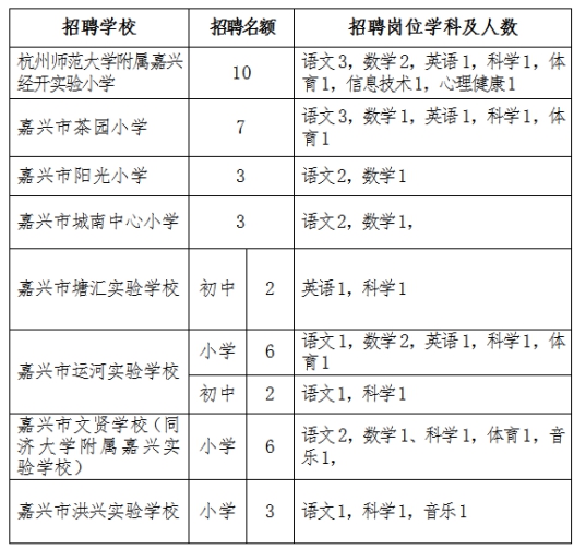 根据全区教育事业发展需要,经研究,决定公开招聘公办中小学教师(事业编制),计划招聘初中教师4 名、小学教师38名,报名点设在杭州师范大学、嘉兴市洪兴实验学校。现将招聘有关事项公告如下: