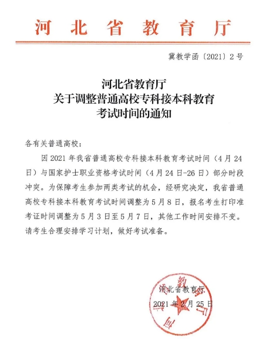 2021年河北专接本考试时间推迟至2021年5月8日
