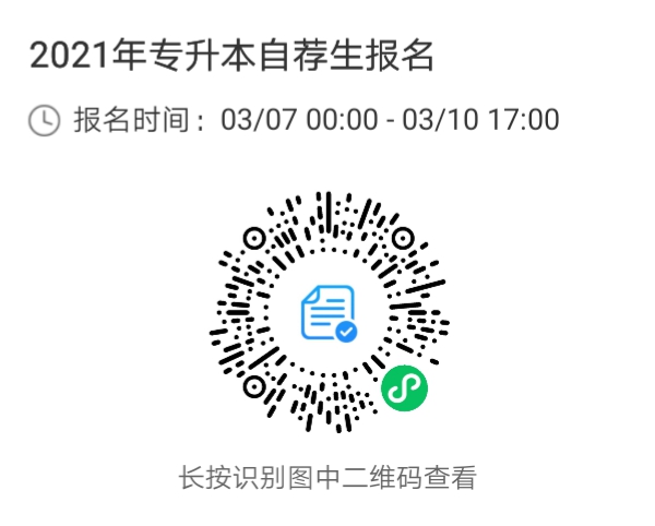 根据《山东省教育厅关于做好 2021 年普通高等教育专科升本科考试招生工作的通知》文件精神,我校定于3月7日-3月10日17:00进行专升本自荐考生专业综合能力测试报名,自荐考生可通过我校官网http://www.suet.edu.cn/进行报名或扫描下方二维码报名。