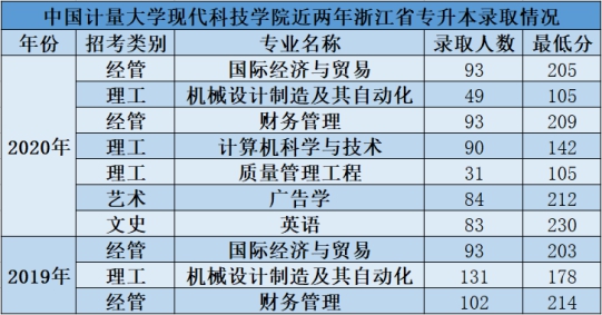 中国计量大学现代科技学院2021年浙江省专升本招生计划